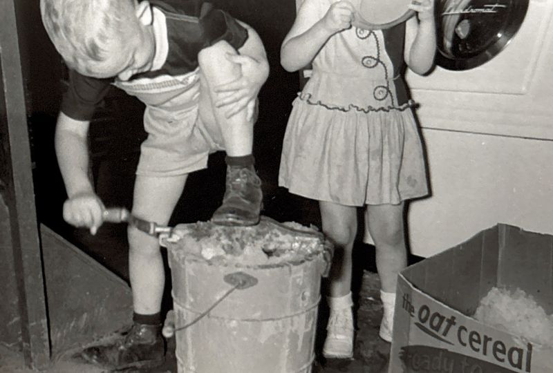 time of my second birthday party in 1952 until 2024. Our parents were good friends and "good Methodists," which meant we saw each other on many, many Sundays. Our families also occasionally got together on Sunday afternoons for homemade ice cream (using respective family recipes). When we went to the Henry's, as soon as I entered their house I can still hear Herb saying to me "Greg's downstairs." I'd go downstairs and into the room with the floor drain where the melted ice flowed, and there was Greg turning the crank of the ice cream maker (something that takes 45 minutes or more to complete). I'm going to guess over the years that Greg did alot more cranking of ice cream than I did.