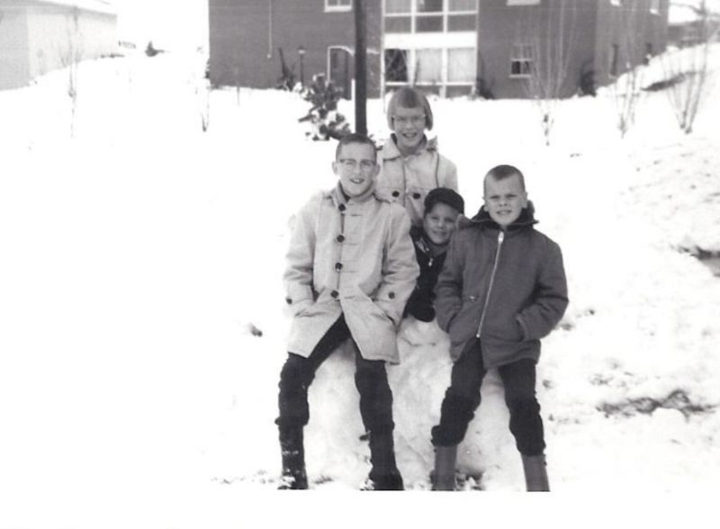 L-R Greg, Ann, Blaine, Mitch in their Monterey Drive home's backyard in December 1961. Greg grew up in this house, always felt like it was home, and was upset (to the degree that Greg was ever upset) when his parents decided to sell the house many years after he had moved to Washington, D.C. He made sure he visited his parents and that home before they moved.