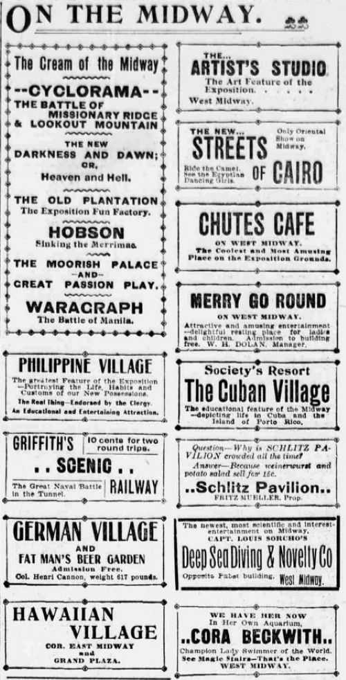 "On the Midway" ad for Greater American Exposition, "The Omaha Daily Bee," June 1899. (North Omaha History by Adam Fletcher Sasse)