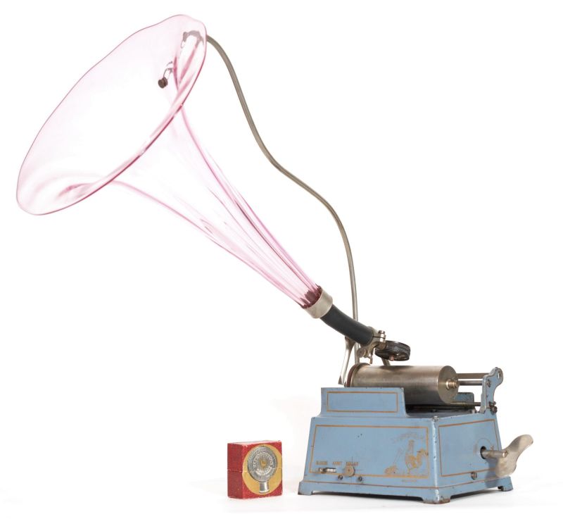 Pathe Model G Exhibitor's Cylinder Phonograph w/Nickel Hunter's Horn, 1899 offered by Pathe Freres in Paris. (Courtesy TechnoGallerie).