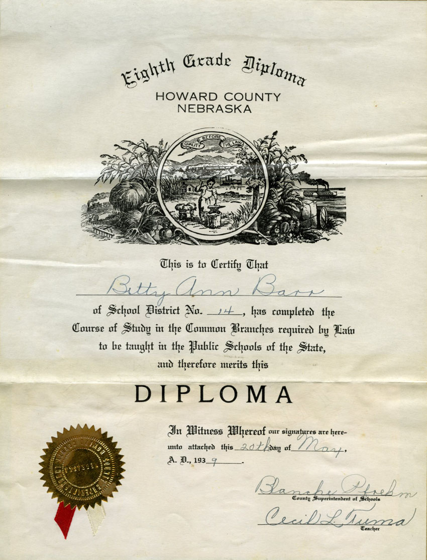 Certificate for Betty