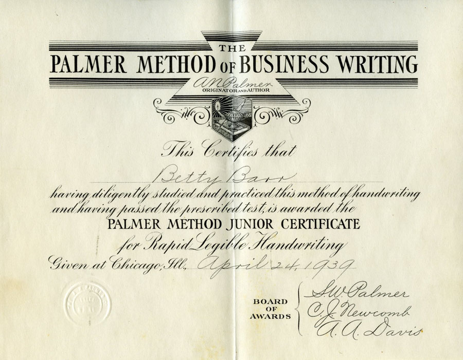 Penmanship Certificate,