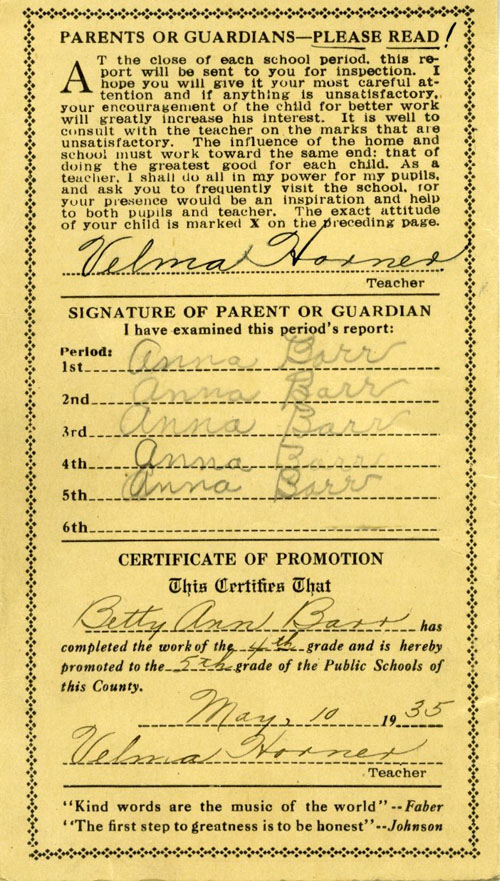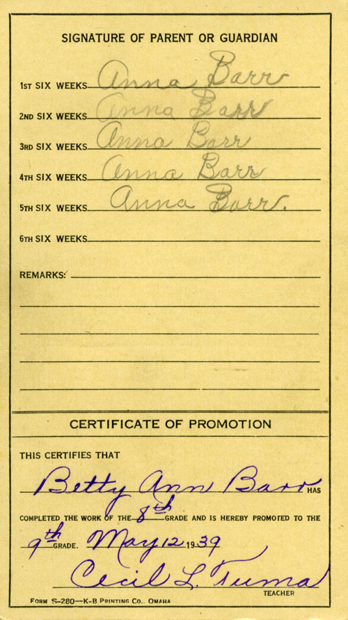 Report card 1939 - Promotion to