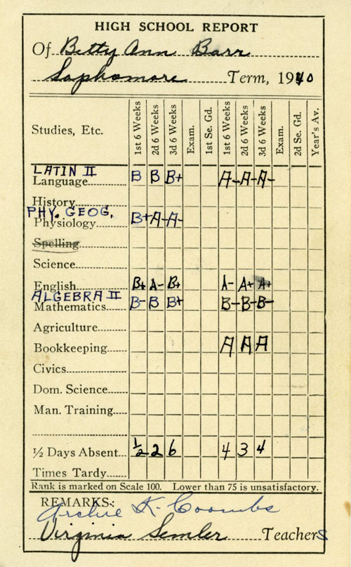 BARR, BETTY ANN, College