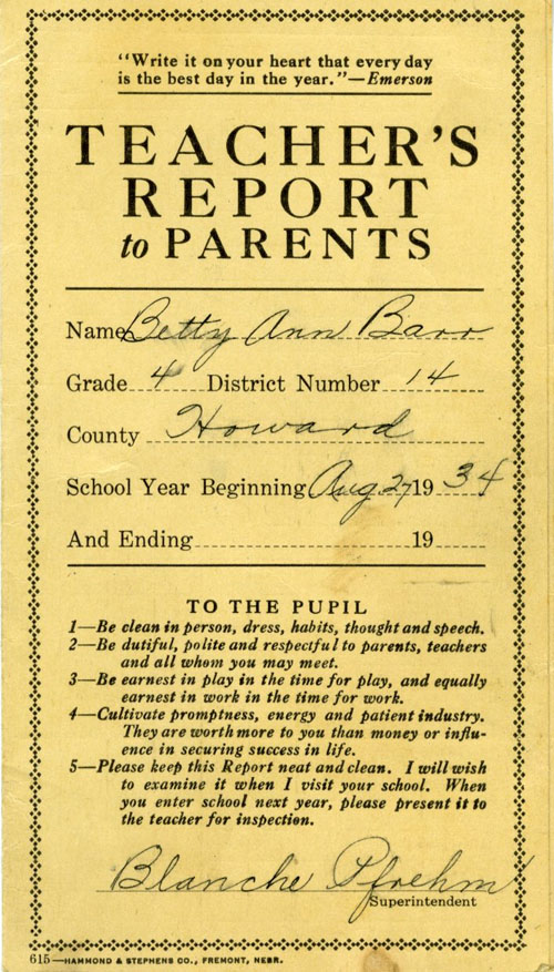 Grade 4 Report Card, Cotesfield
