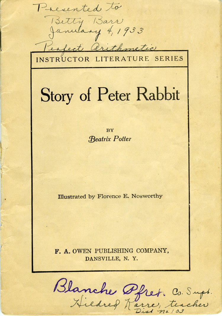 by Beatrix Potter presented to Betty for Arithmetic achievement, 1933