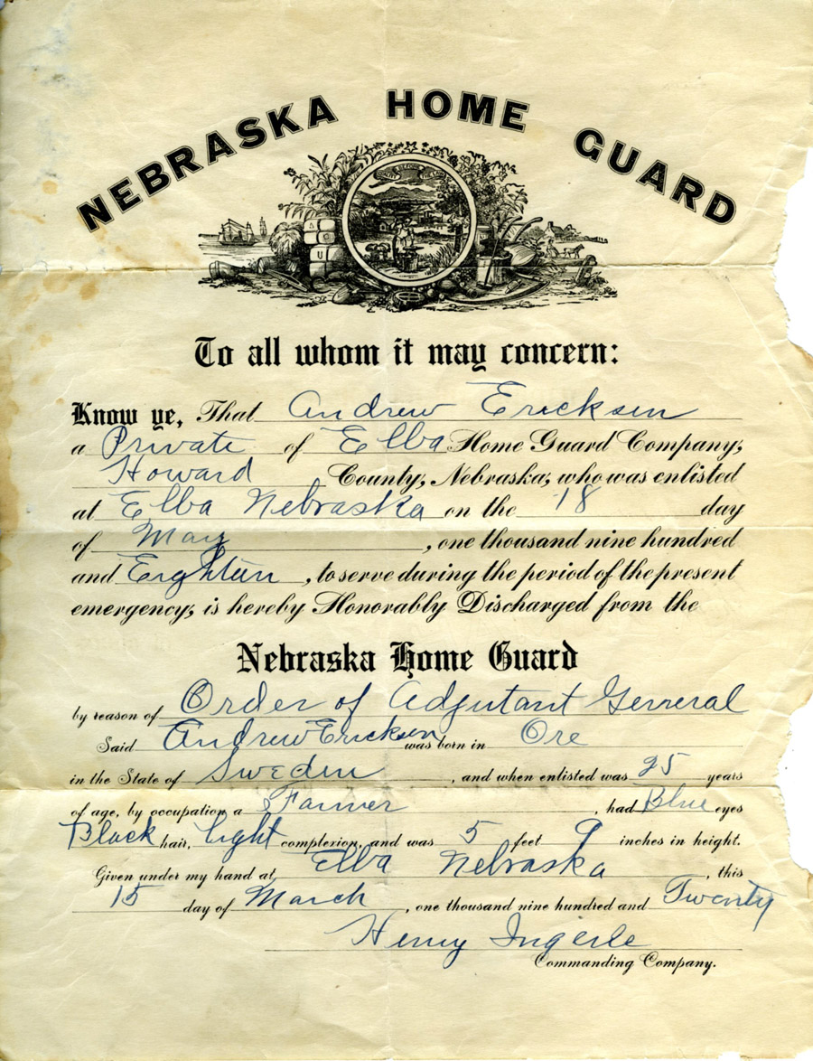from the Nebraska Home Guard, March 15, 1920.