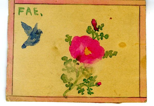 x 2.5" card was probably made by Fay as a child (FAE - Fay Alice