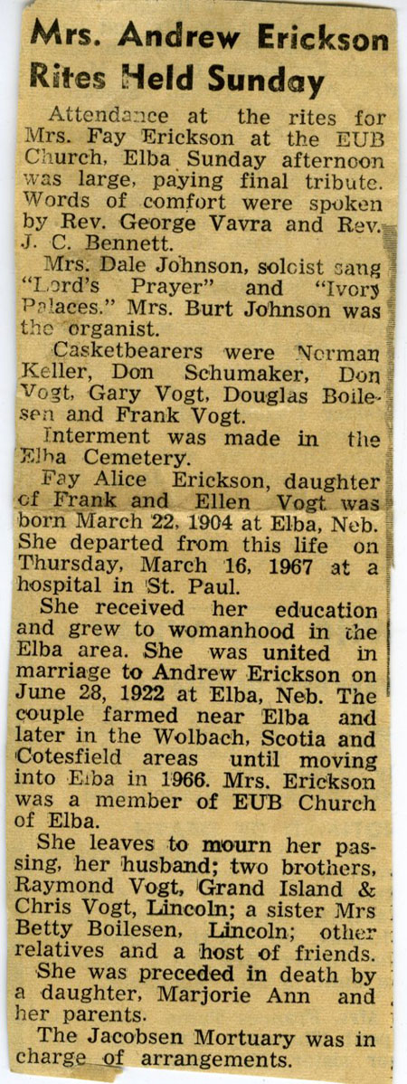 moment of time regarding Fay Alice Vogt Erickson, I can speak her