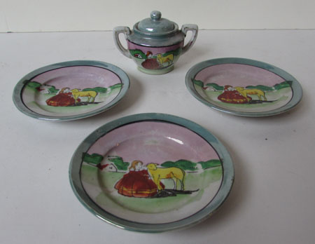 lamb doll china plates and sugar bowl