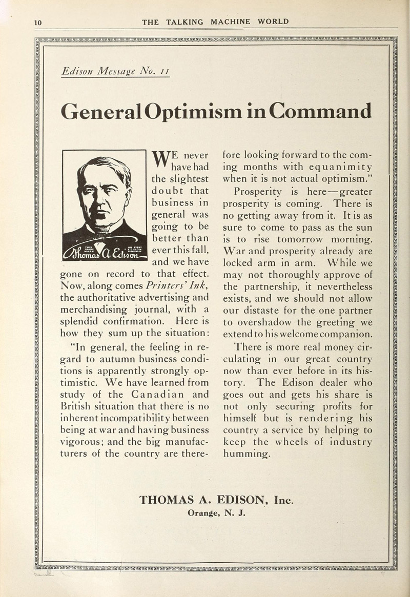 Edison Message No. 29, The Talking Machine World, October 15, 1918