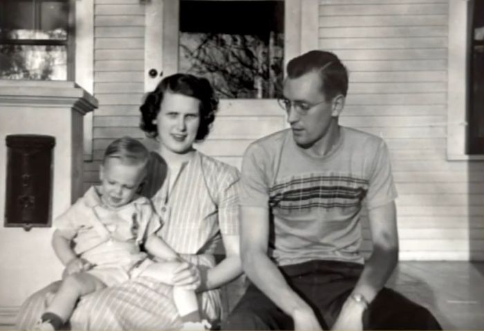 Greg, Ruth and Herb on their front porch where Greg first lived in Lincoln, NE.