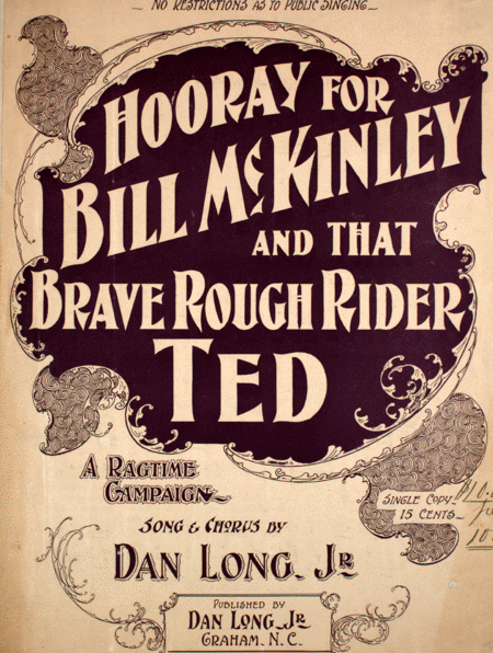 Dan Long, Jr., music and lyrics. “Hooray for Bill McKinley and That Brave Rough Rider Ted.” Graham, NC: Dan Long, Jr., 1900