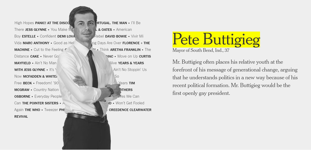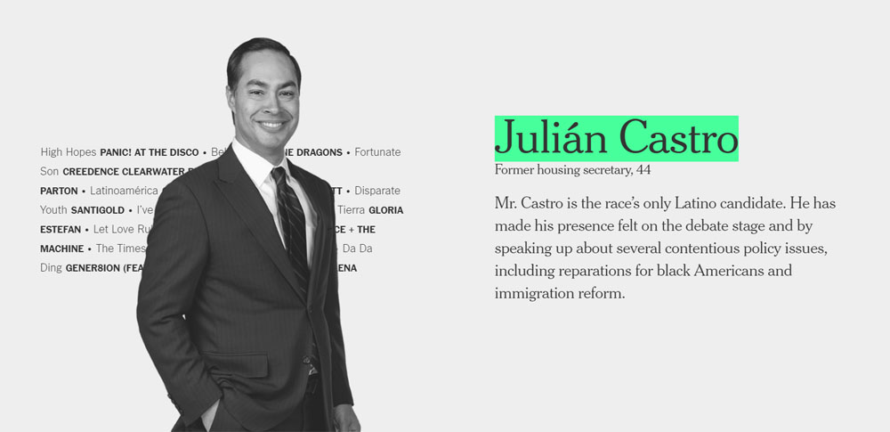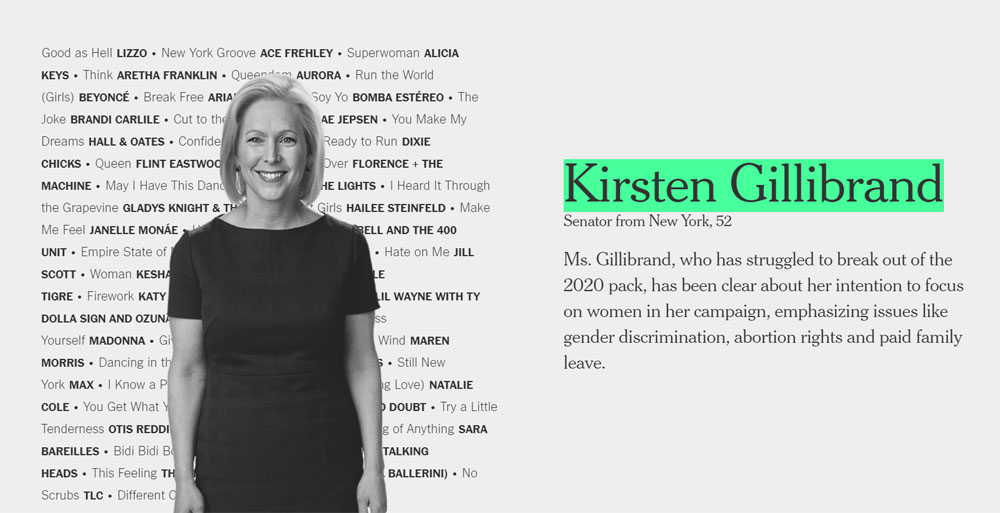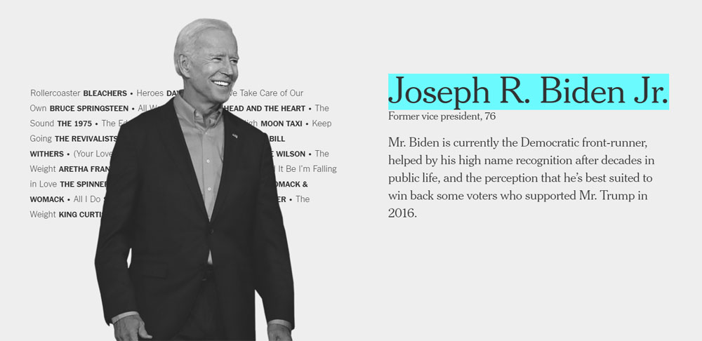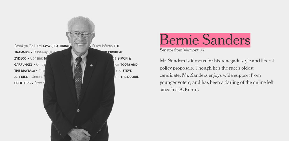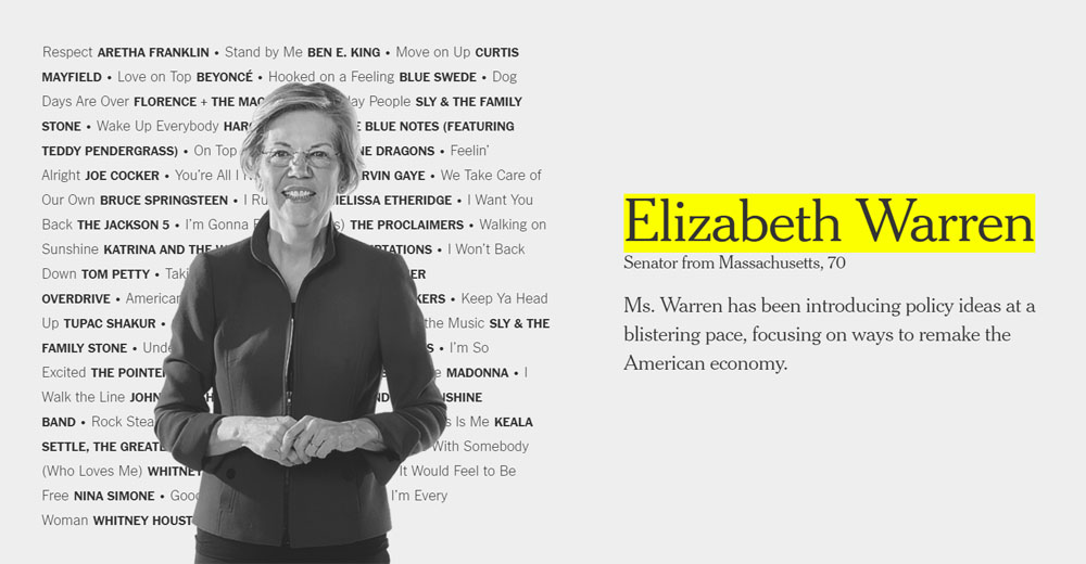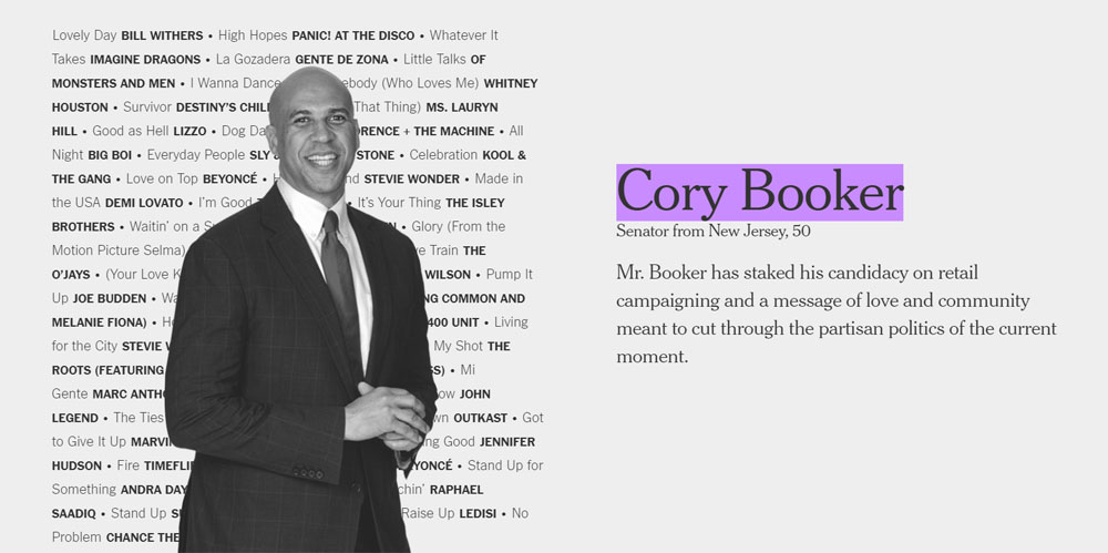 Text and images courtesy of The New York Times, Photos by Tony Cenicola and Todd Heisler. Additional photo production by Jessica White. Additional development by Alastair Coote. POLITICS REPORTER Astead Herndon GRAPHICS EDITORS Gabriel Gianordoli Umi Syam MUSIC CRITICS Jon Pareles Jon Caramanica