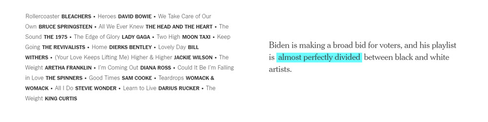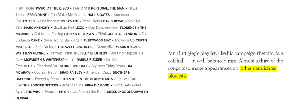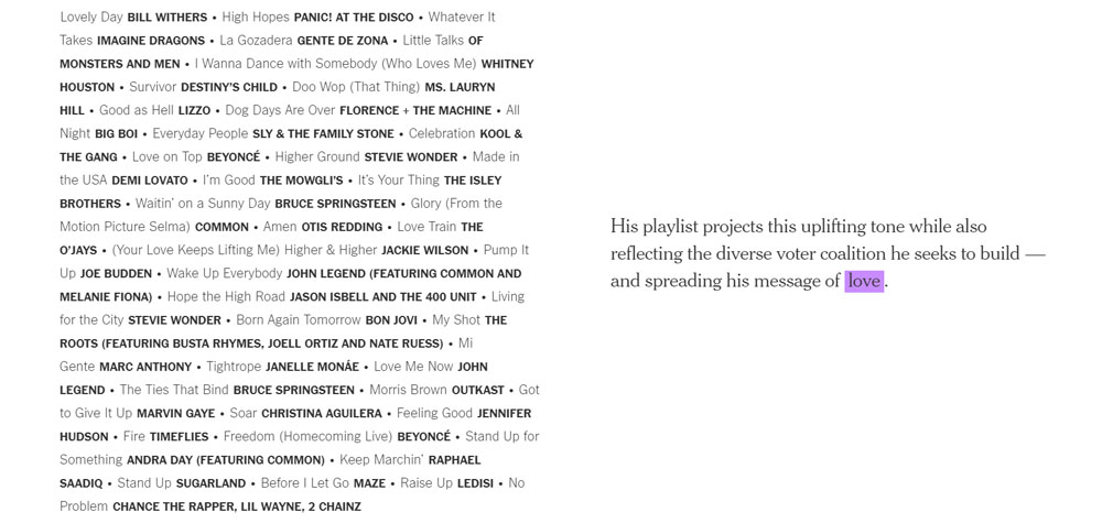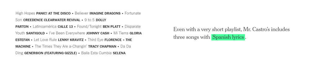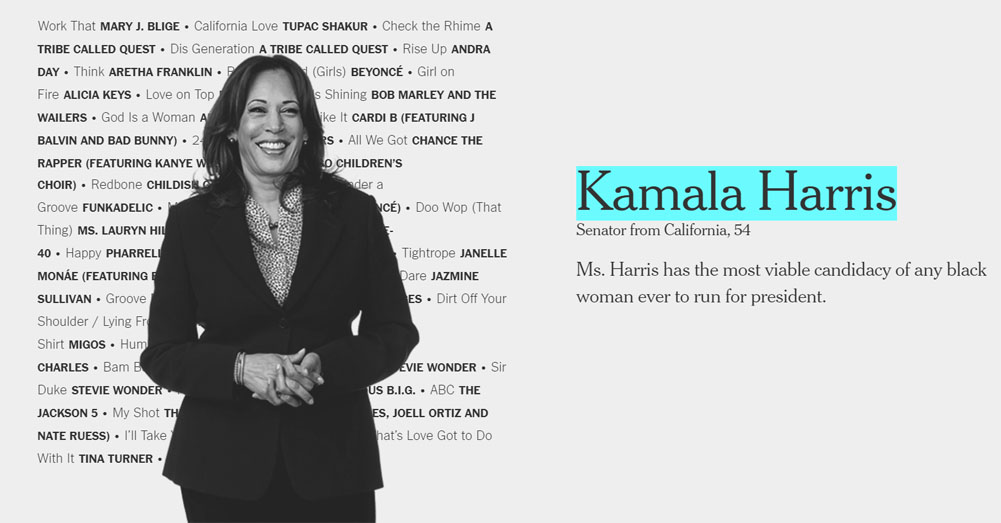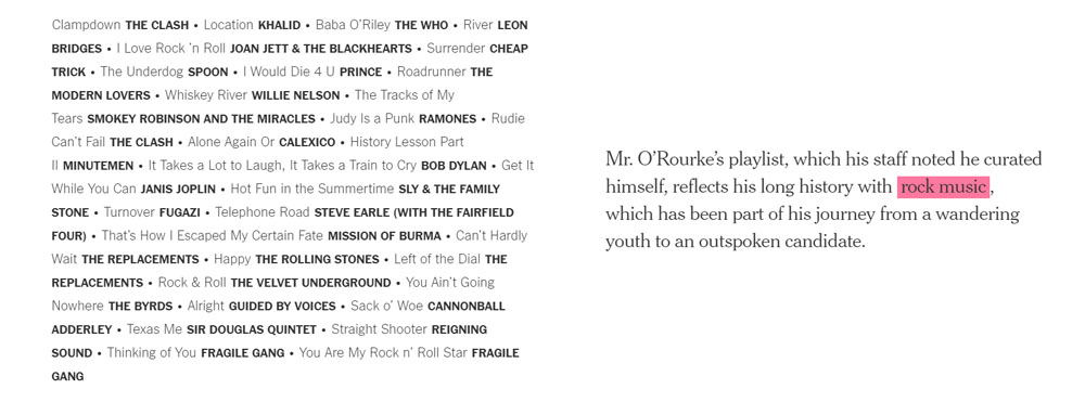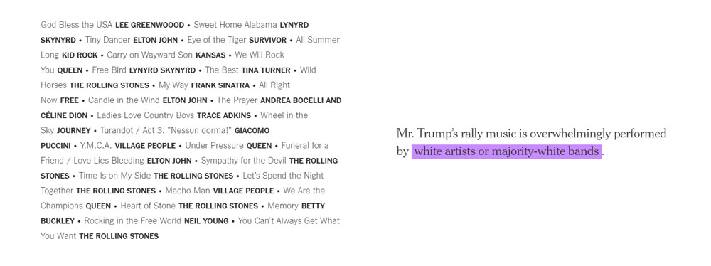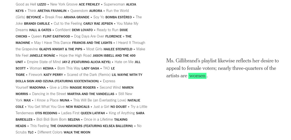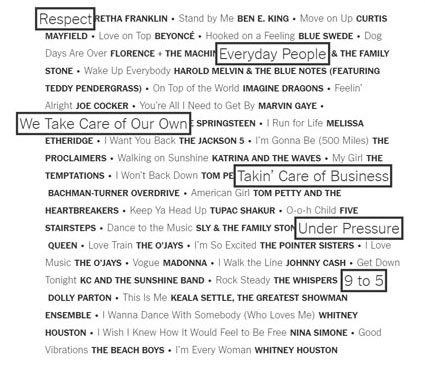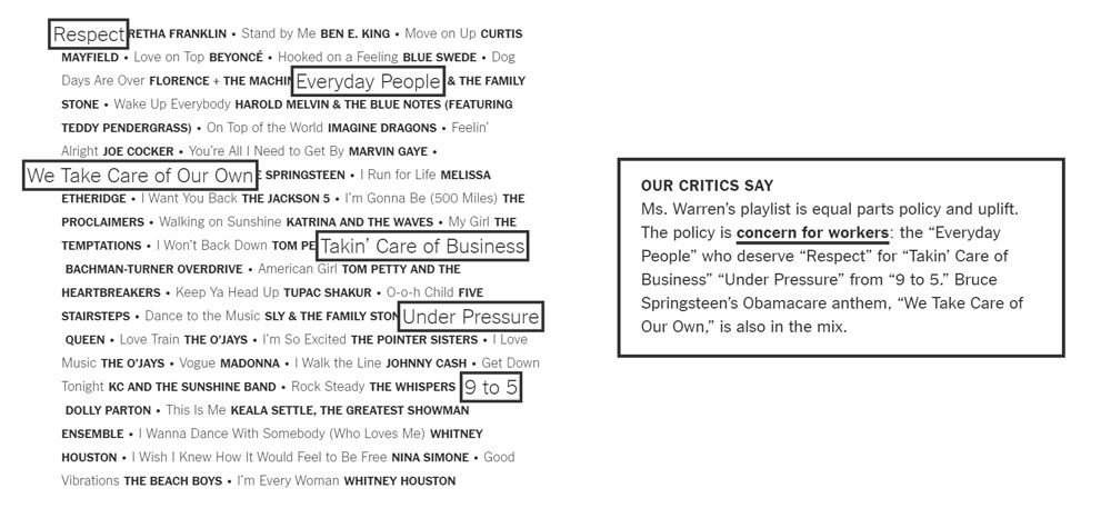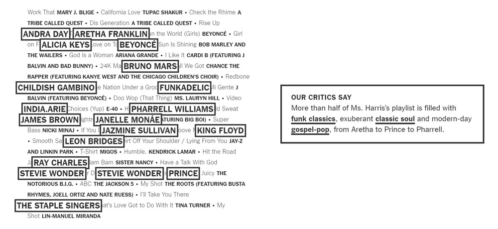 Visit the August 20, 2019 NYT article for analysis of playlist selections, what the 'critics' say, videos and music previews provided by Spotify.