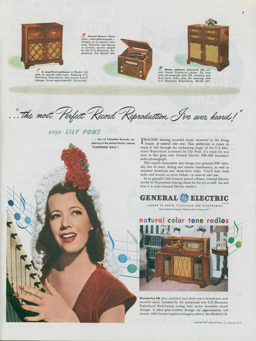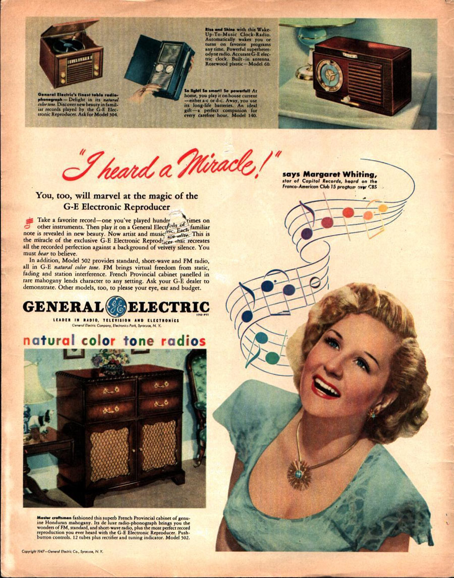 Margaret Whiting says "I heard a Miracle!" General Electric Radio Phonograph, 1947