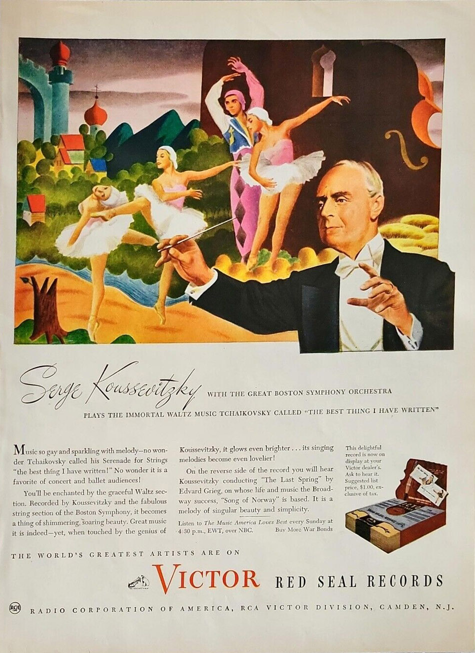![]() Serge Koussevitzky with Boston Symphony Orchestra, "Serenade for Strings," Victor Red Seal Record, Life, March 1945
