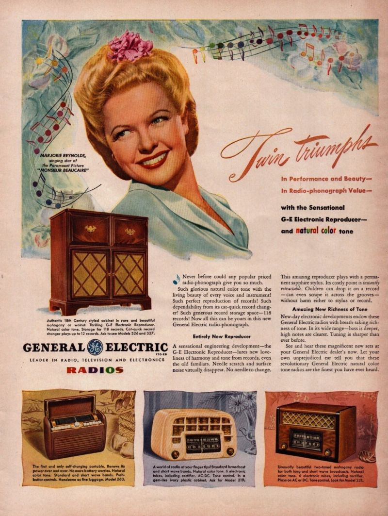General Electric "brings Twin Triumphs with Marjorie Reynolds," 1945