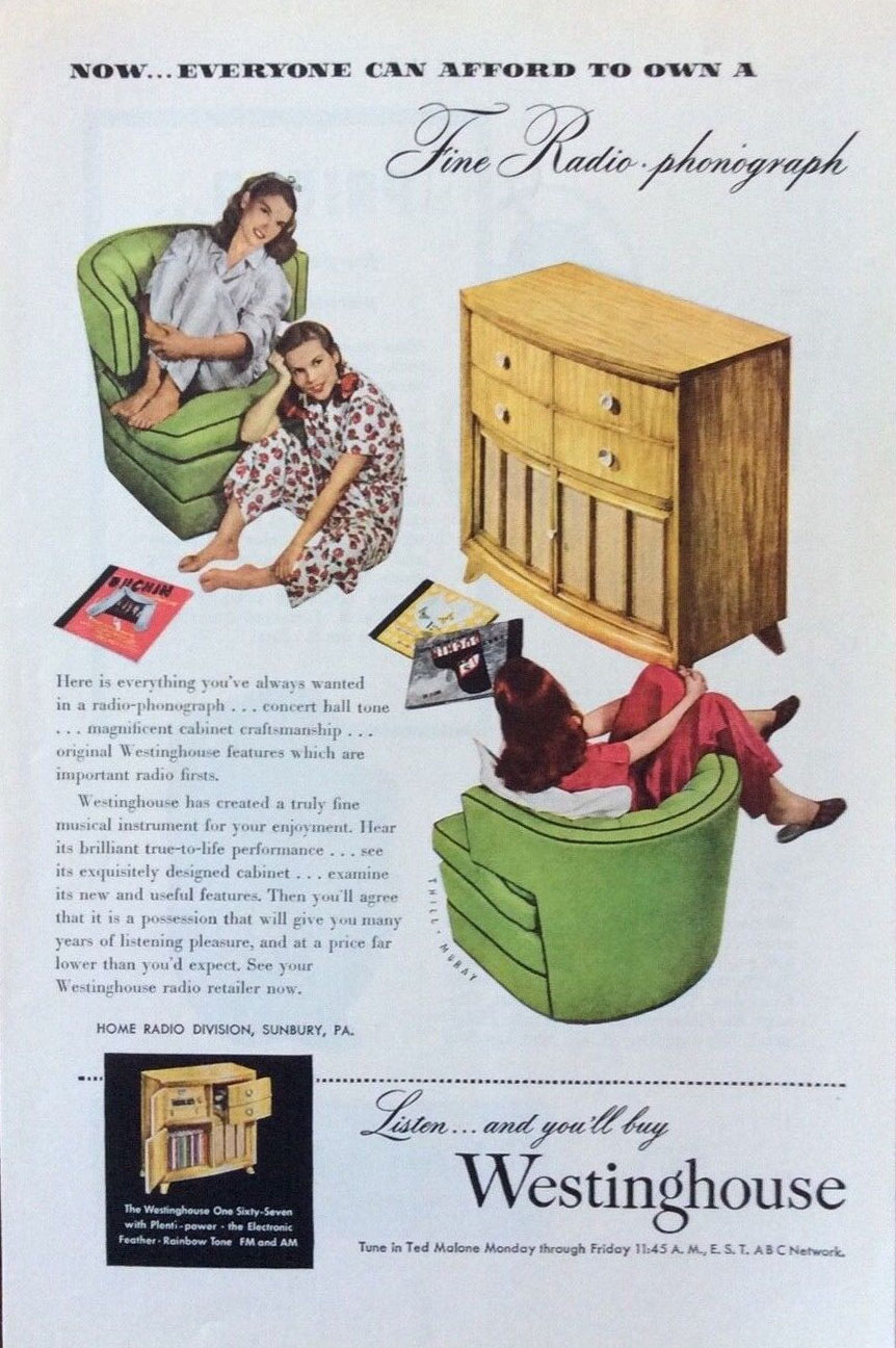 "Hear its brilliant true-to-life performance" Westinghouse Radio-Phonograph, 1947