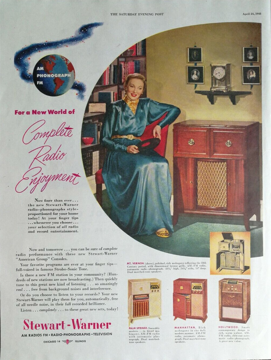 Radio-Phonographs, Stewart-Warner, The Saturday Evening Post, April 24, 1948