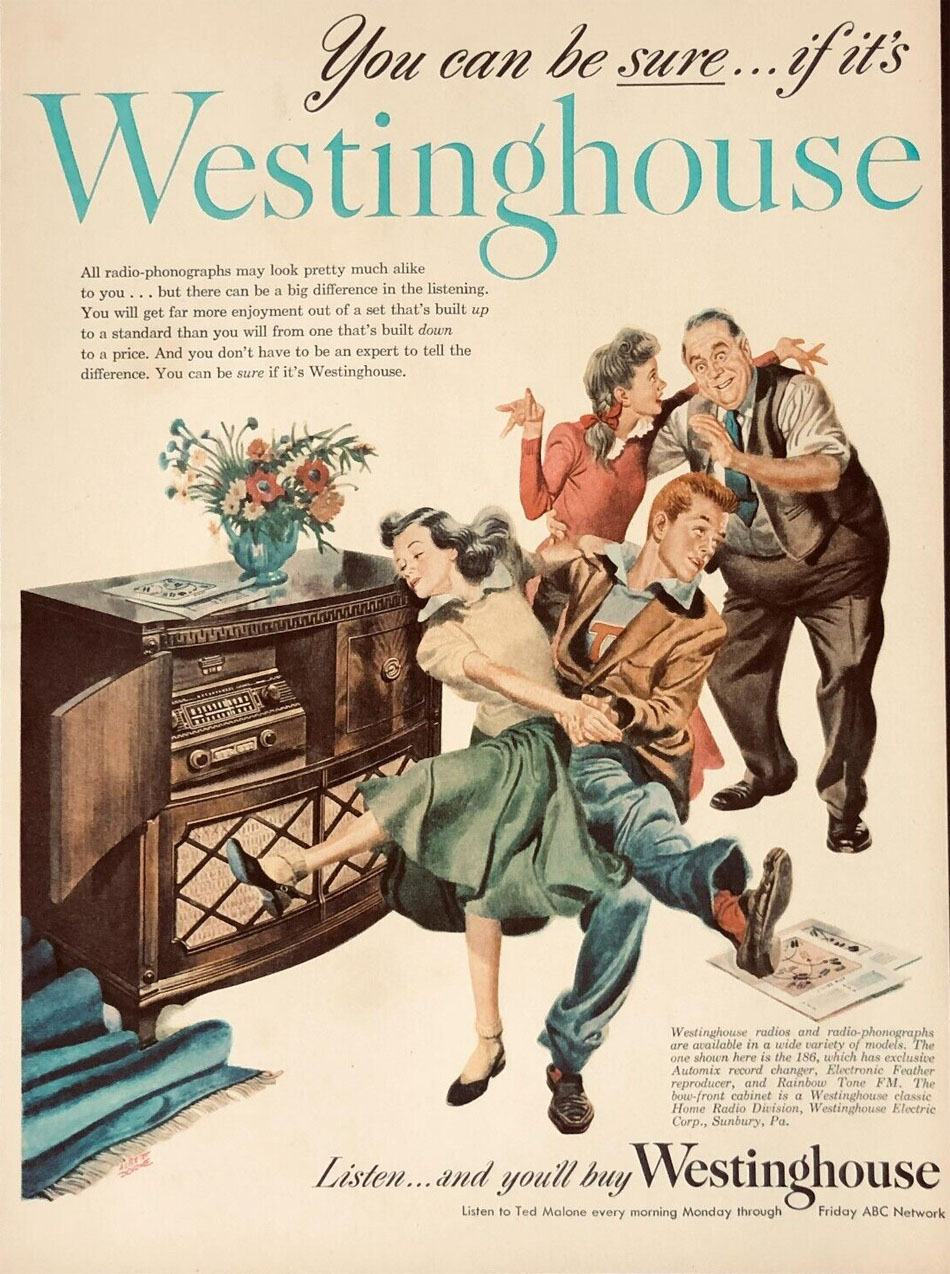 "Listen...and you'll be amazed at the true-to-life tone." Westinghouse Radio-Phonograph, 1947