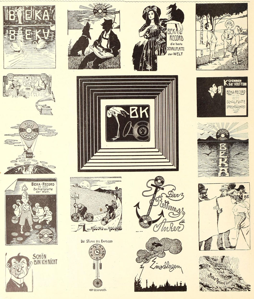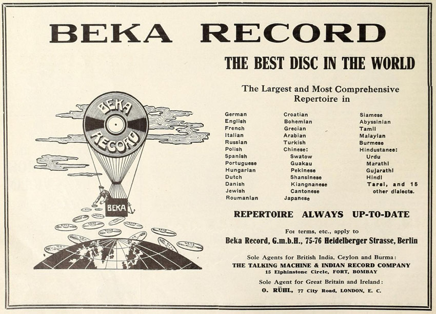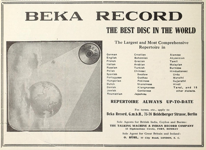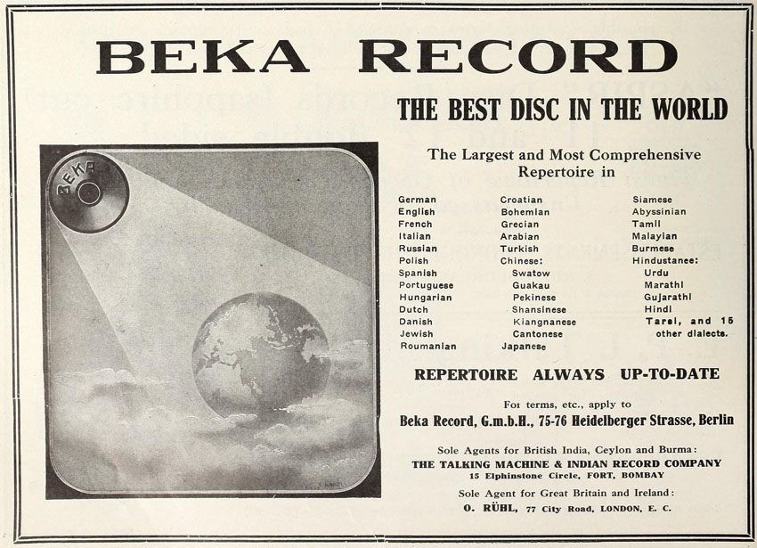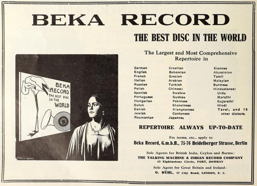 their Bekophone, an open horned talking machine.