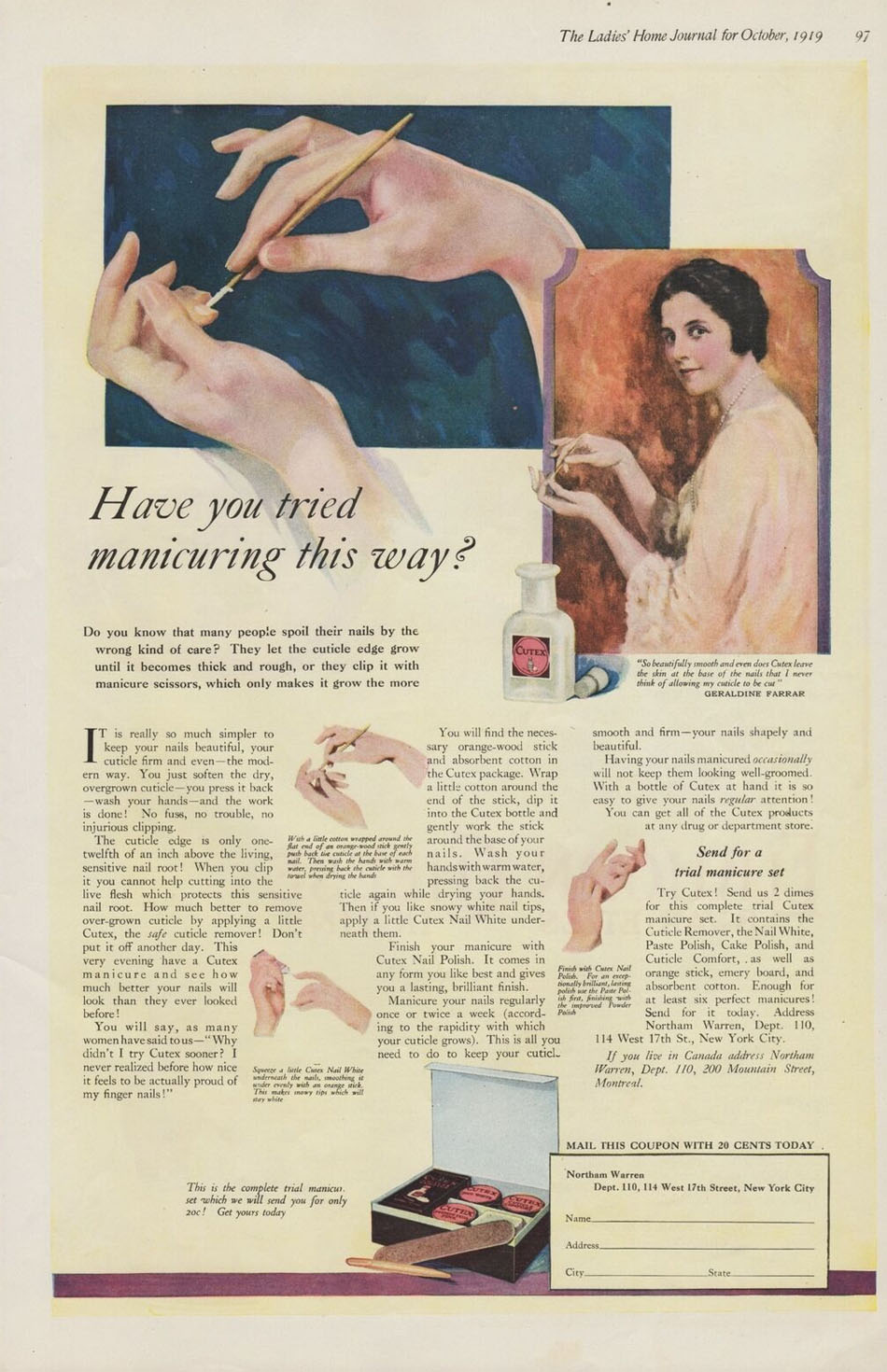 Cutex, the modern way to manicure, The Ladies' Home Journal,