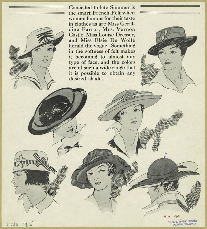 French Felt" hat, newspaper clipping 1915, Courtesy New York