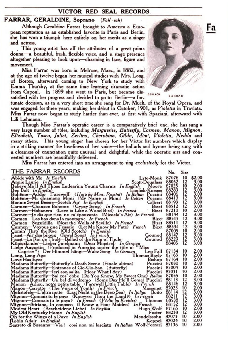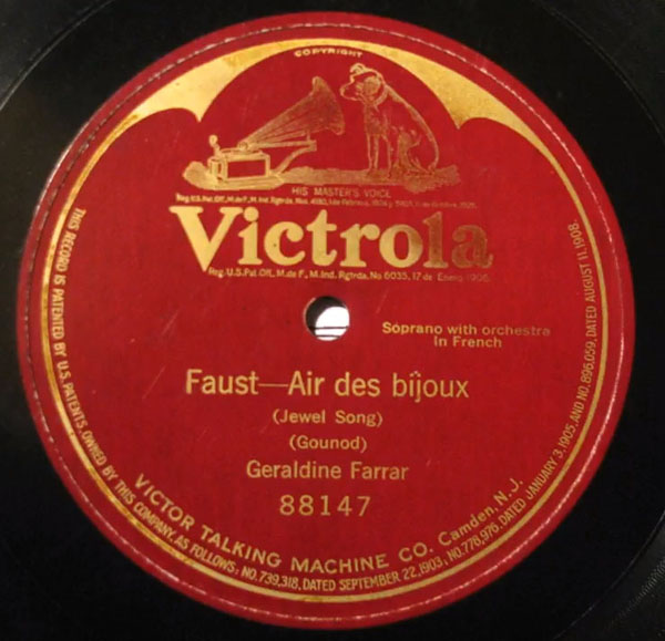 a 1913 Victor recording of Farrar singing Marguerite's aria the "Jewel