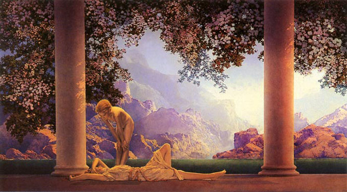 See below for the original 1922 Maxfield Parrish painting Daybreak and other artistic 'covers' e.g., Michael Jackson's 1995 music video 'You Are Not Alone" which included Michael and his wife Lisa Marie Presley; the movie poster for the 1987 movie, The Princess Bride produced by Act III Communications; and the book cover for Penguin Dreams and Stranger Things - Bloom County, 1985 by Little Brown and Company.