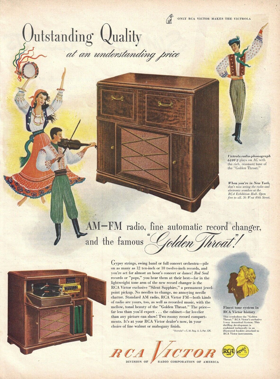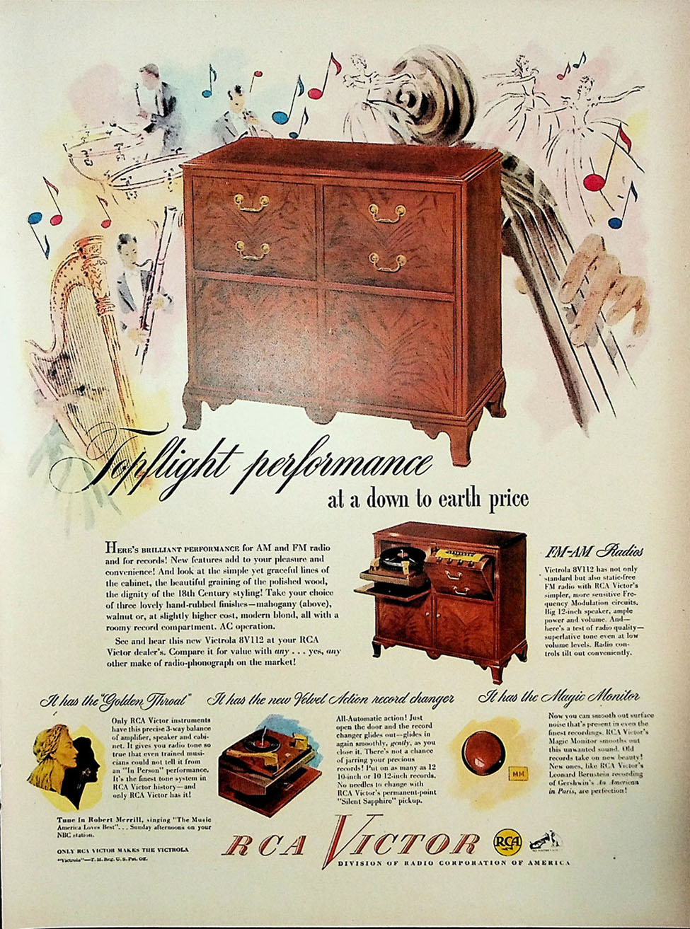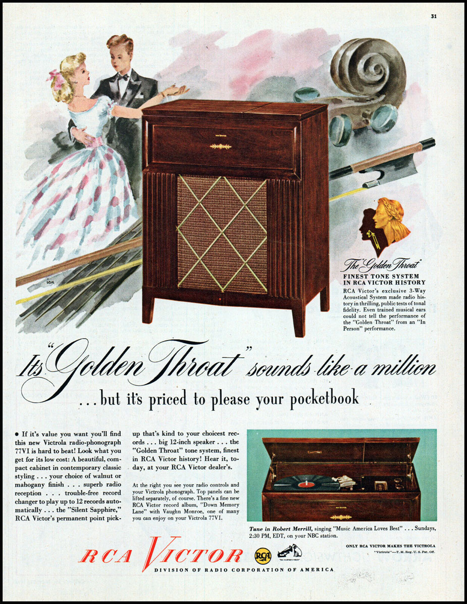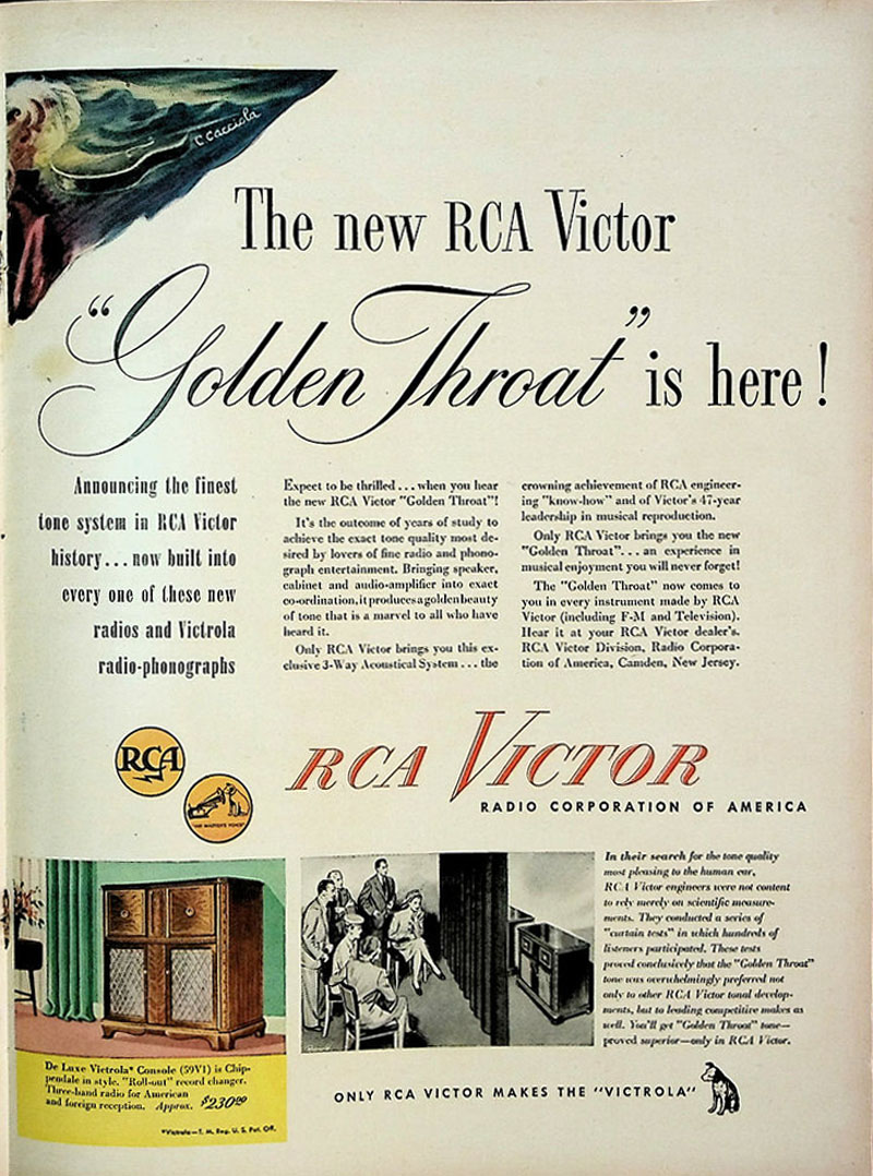 "Topflight performance at a down to earth price." It has the with the "Golden Throat," 1948.