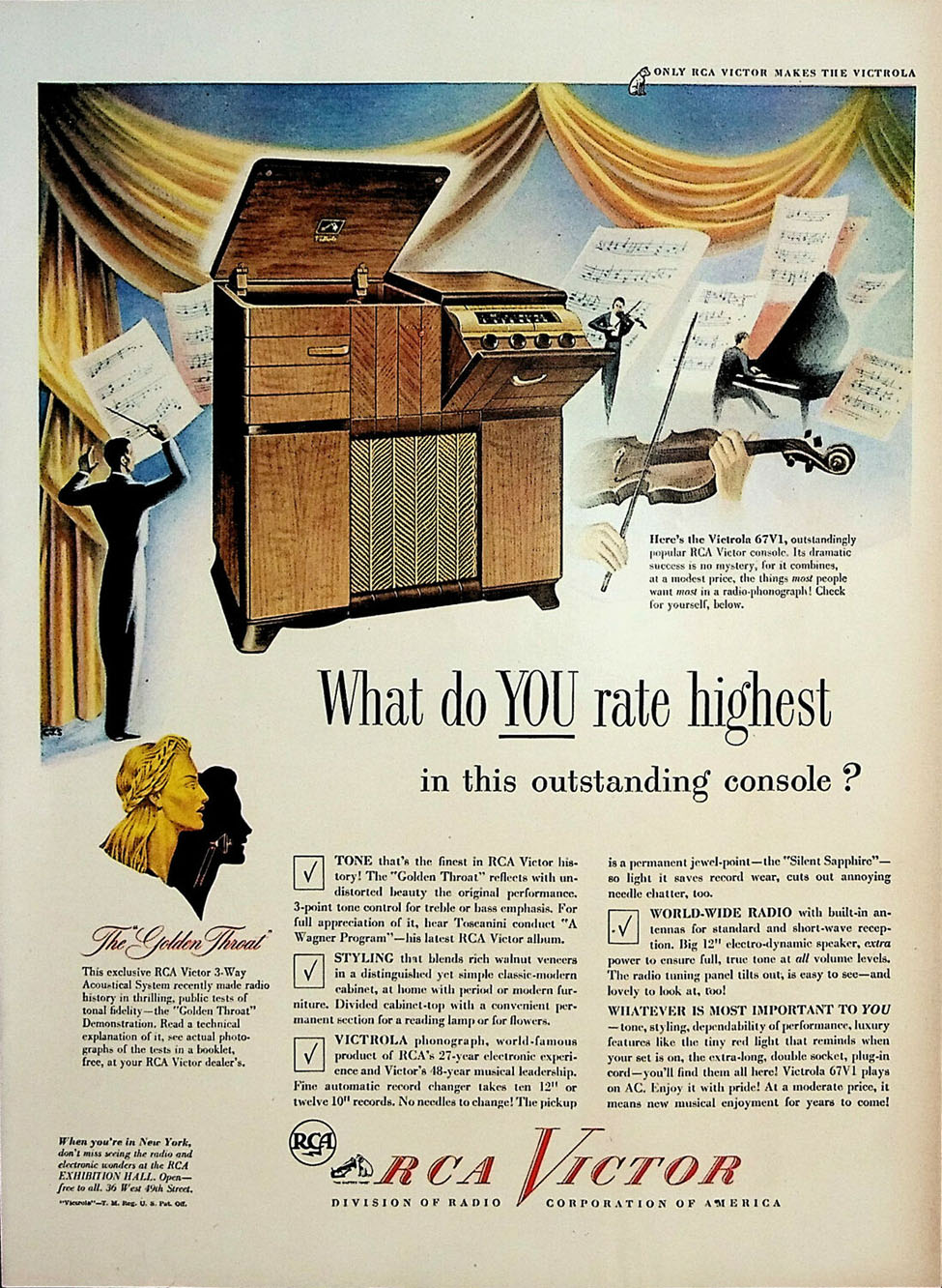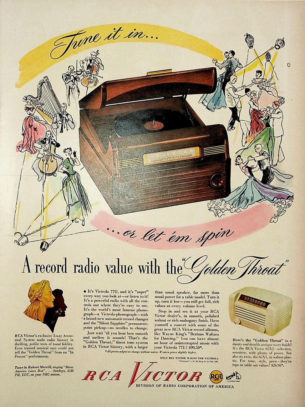 "Tune it in...or let 'em spin" with the Golden Throat," 1948.