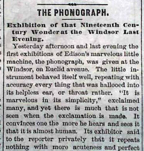 Evening Newspaper, July 9, 1879 the phonograph had earlier given