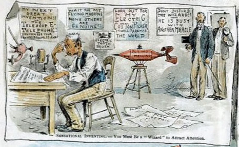 a humorous characterization of Edison, "the Wizard of Menlo Park."