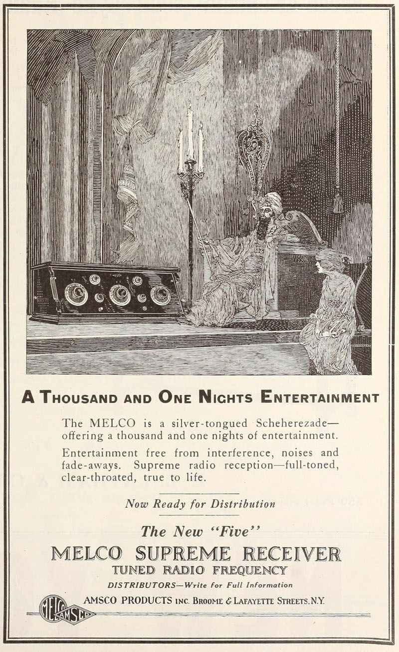 a wireless (radio) tower, an aeroplane, and a color moving picture