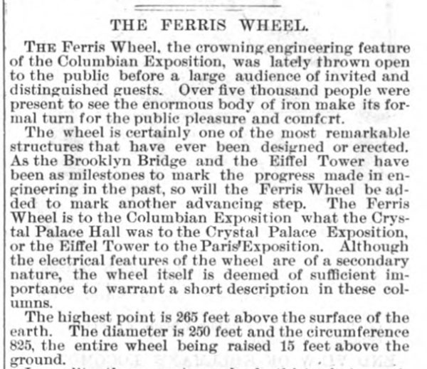 The Column of Oranges, World's Columbian Exposition of 1893, Scientific American Supplement, July 1, 1893