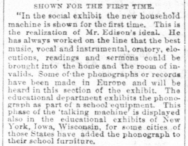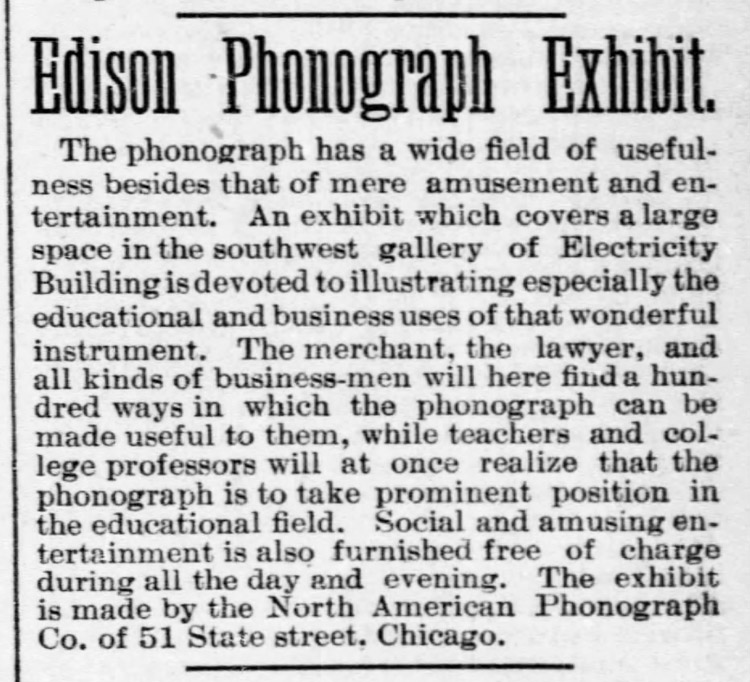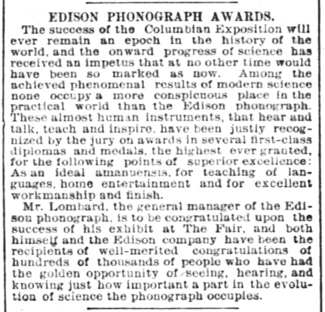 in Paris and Edison did highlight his 1893 phonograph in Chicago