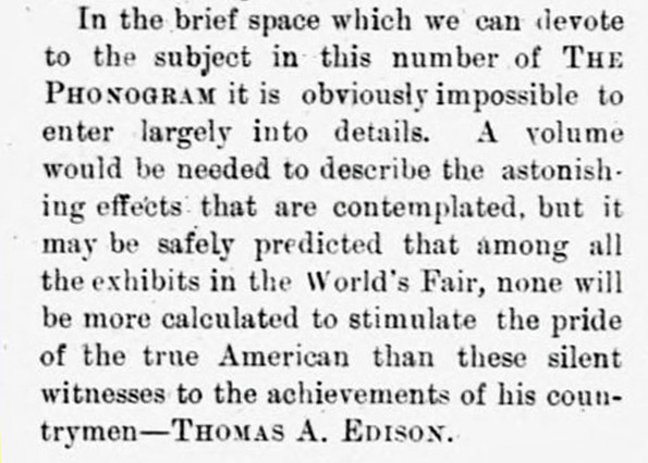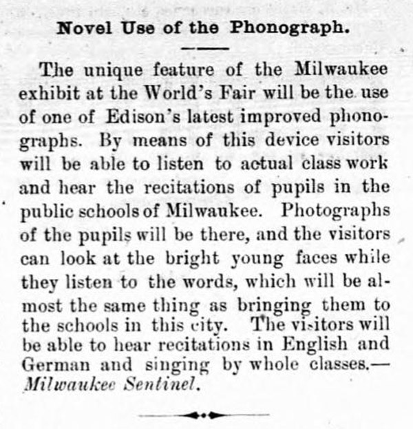 - World's Columbian Exhibition of 1893 and the Phonograph