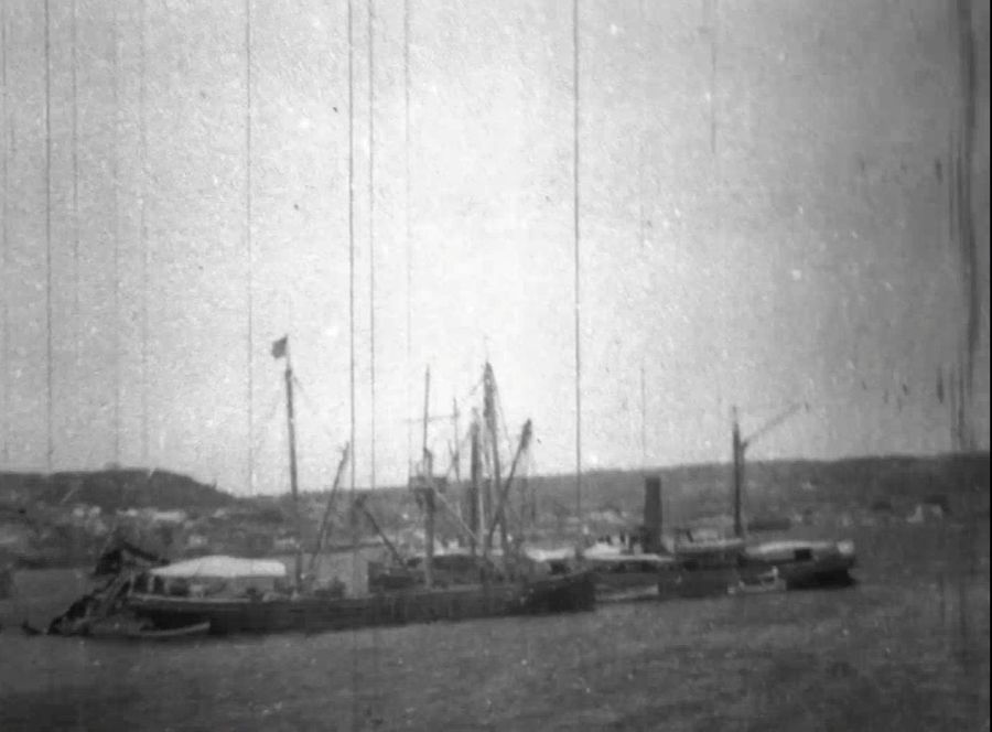 Screenshot from Edison moving picture of Wreck of the battleship "Maine" (WATCH) in Santiago harbor, Edison Manufacturing Co., Copyright April 21, 1898. Library of Congress.