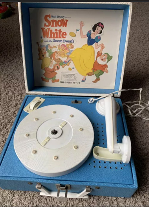Snow White and the Seven Dwarfs Electric Phonograph, Model 42000 Style 616, Two-speed 45 and 78 RPM, Walt Disney Productions, Porter Chemical Company, Hagerstown, MD, circa 1970.