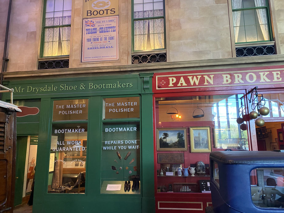 Although there are no phonographs, the cobble-stoned Glasgow Street with its shops from the 1890's to the late 1930's make the Riverside Museum in Glasgow, Scotland a must see. The interactive kiosks within those shops provide stories about the owners, families and patrons of the businesses, and glimpses of Glasgow life a century ago.
