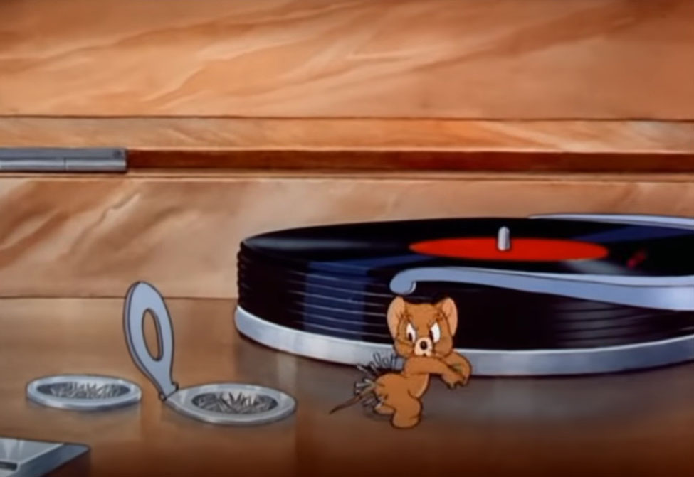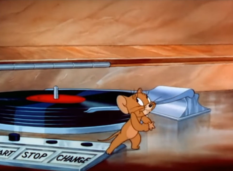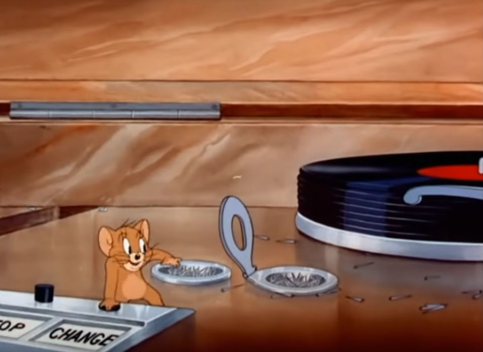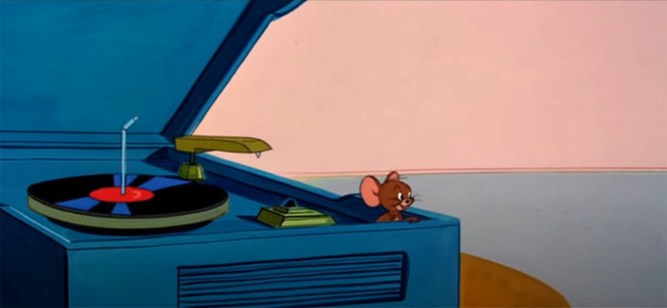 The following are screenshots from the three-minute fragment of the sixth episode of short films Tom and Jerry. Titled "Puss n' Toots" (a.k.a. Puss n' Boots) this episode was released on May 30, 1942. This short cartoon featuring a console phonograph with an automatic record changer can be viewed on the Warner Brothers - Jonni Valentayn YouTube Channel. *Disclaimer